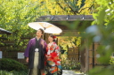 公園の机とベンチも、素敵なお二人を演出するための小物に!