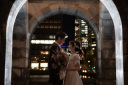 完全に日が落ちた東京駅前。この頃にはお二人も完全に撮影に慣れてきて、色々なポージングを楽しんでいるように見えます♪