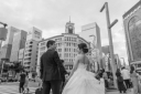 和装に続いて洋装。ドレスでレンガ前はかっこいいですね!丸の内周辺。