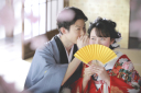 緑をバックにダイナミックなカットに。鮮やかな緑に色打掛が映えます。