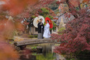 和傘を使うことでより和の雰囲気が引き立ちます!木漏れ日もいれてロケーションの様なお写真に♪