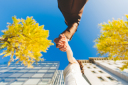 相合い傘でお散歩中。来年の桜が待ち遠しいですね!