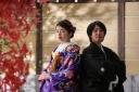 西口の居酒屋が集まる中にもドレスタキシード姿で撮影です。