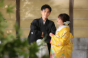 縁側では、紅葉を入れながら雰囲気をガラリと変えて。紅葉がお二人の姿をより引き立てます…!