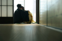 紅葉と一緒に縁側での撮影!スタジオアクアのスタジオは宮大工さんが1からこだわって作っていただいたのでまるで屋外でお撮りしたようなお写真を残すことが可能です