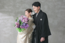 ブーケで顔を隠したお写真です!色打掛とお花の色がマッチしていて可愛すぎる!!