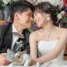 ラストショットはみんなで正座のポーズ。パグちゃんが自由に動き回る楽しいスタジオでした。末長くお幸せに!