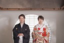白い和傘を差して、紅葉が舞う道を歩いていただきました。後ろ姿だけでもお二人の雰囲気が伝わってきます。