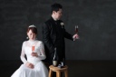 ご新郎様のジャンプ!新婦様もつられて少し引っ張られているような雰囲気で撮影をしました。