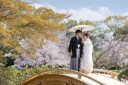 フォーマルな立ち姿から。少しずつ緑も萌み始めた撮影時期。明るい木々が二人を迎えていました。