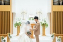 浅草店の本格的な屋内庭園でフォーマルな立ち姿を撮影。正式な婚礼写真のひとつでもあり、スタジオプランに含まれる台紙にも使用される一枚です。