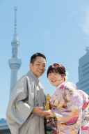 お二人とも傘を持った和装ならではのカット。全身しっかり見えるカットなので、お二人で併せたコーディネートもしっかり見えますよ!