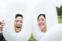 こんにちは!スタジオAQUA浅草店です。お花屋さん風のスペースに腰掛ける新婦様と新郎様の後ろ姿。待ち合わせシーンを再現しました。