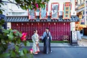 浅草店ならではのお花屋さん風背景から撮影開始! 彩り豊かな背景でより華やかに^^