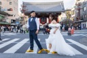 最初はお花屋さんの背景から。カラフルな背景がお二人を一層華やかに見せてくれます!