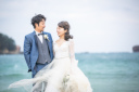 ご新婦様は胸元に刺繍の入った華やかなウェディングドレス。ご新郎様はホワイトのタキシードを合わせ全体的に明るい印象に。好きな雰囲気に合わせてお衣装をご提供します。