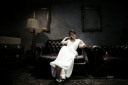 背景に和傘を置いてご新婦様を引き出しました。インパクトある写真にしました!