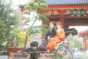 紅葉に彩られた橋の上で。赤の色打掛がとても素敵に写っていました。