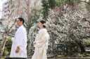 紫陽花との撮影。白無垢、色打掛問わず相性も◎です。