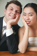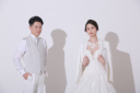 合計3着で撮影をしたお二人!1着目は白ドレス+ネイビーのタキシード。
