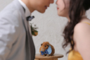 撮影小物として数字のバルーンをお持ち込みいただきました。シンプルなスタジオにバルーンが映えますね♪お二人の数字ポーズもばっちりです!