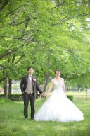 洋装に着替えて公園へ移動。眼鏡橋と呼ばれるスポットです!新緑がきれい。