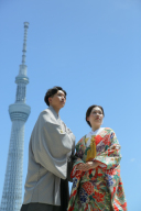 レース打掛は、最近入ったばかりの新作衣装です!ドライフラワーとの相性もバッチリです。