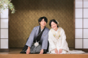 掛け軸の前でお辞儀をして頂き、ご挨拶のシーン^^掛け軸の前は、温かみのある雰囲気でお二人にぴったりです。