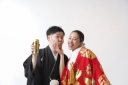 袴を着たワンちゃんとご新郎様。お揃いのお衣装でお二人の思い出の1枚に^^