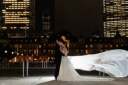 今度はスタジオを出てスカイツリーを背景にご撮影◎綺麗な青空とお二人だけを照らす西日がマッチして素敵な雰囲気に仕上がりました◎