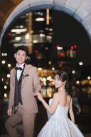 今度はスタジオを出てスカイツリーを背景にご撮影◎綺麗な青空とお二人だけを照らす西日がマッチして素敵な雰囲気に仕上がりました◎