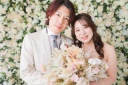 たくさんのお花の壁を背景にお二人の表情とっても素敵です!!
