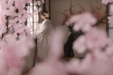 続いてイングリッシュガーデン風の背景でお顔を隠した一枚に挑戦!!まるで、お外で撮影をしているようなお写真を撮ることができる背景です!