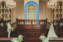優しく手をひく新郎様と見つめる新婦様が素敵ですね。
