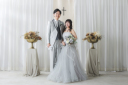 ドレスや肌を綺麗に映すならシンプルに無地背景の撮影。ライトの光でフワッと綺麗に