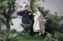 スタジオは天気関係なく四季折々撮影することが可能です!ここでは少しクールに決めるお二人!とても雰囲気に合っていますね!