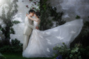 イングリッシュガーデンでお二人のフォーマルショット。緑の柔らかい雰囲気がお似合いです。