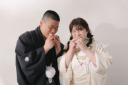 お二人のピースをカメラに近づけて奥行きのある感じに撮影いたしました!