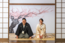 おふたり縁側に座って。桜で花見している風です!自然体な感じがいいですね