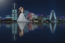 装飾を削ぎ落としたシンプルな白背景での立ち姿。衣装の細かな刺繍や、お二人が醸し出す雰囲気が際立ち、色褪せない美しさを残すことができます。