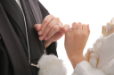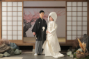 新郎新婦様、お揃いで真っ白の純白の衣装に包まれたコーディネート。白壁との潔い組み合わせが、ここから始まる新生活のスタートを象徴しているみたいです。