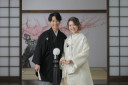 白無垢といえば旦那さんは黒紋付、という方も多いですが、みんなと差を付けられる色紋付で撮影も垢抜けて素敵ですよ♬