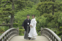 とても広い大桟橋の上では、お二人の白い衣装がとても際立ちます。