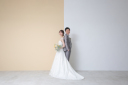 フラワーウォールは当店でも人気の背景!控えめなイエローがドレスとタキシードを映えさせてくれます♪