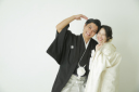 扉の前で寄り添い合うお二人。先程までのお写真と違ってかっこいい一枚に♪