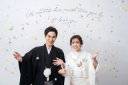 ちょっと照れた表情も素敵です!桜のピンクはお嫁さんが喜んでいただける背景です。