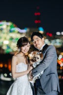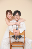 チャペルの屋上にある階段にて。振りかえるお二人。