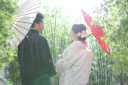和傘を使ってシルエット撮影♪横浜ならではのレンガとの相性も◎