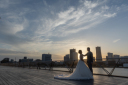 桜をバックにご新婦様のソロショットに挑戦!!ご新婦様の笑顔がとても映える一枚に!!