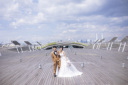 大桟橋での一枚! 陽が沈む前にお二人の自然な表情を格好よく! モノクロにすることで更にお二人のカッコよさが引き立ちます!!